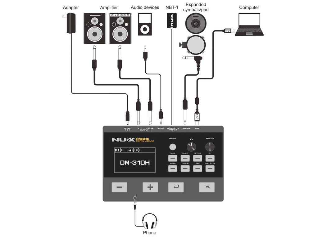 Cốt lõi của DM-310H là công nghệ VariTone™ tiên tiến của NUX. Được hỗ trợ bởi các thuật toán tiên tiến và hiệu suất xử lý mạnh mẽ, nó tích hợp thư viện âm thanh chất lượng cao và nắm bắt chính xác những khác biệt tinh tế ở các vị trí đánh. Kết quả là âm thanh chân thực và phản hồi động, tái tạo trung thực trải nghiệm sống động của bộ trống acoustic.