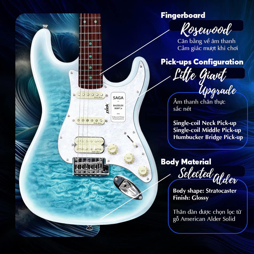 Đàn guitar Saga Dazzles Series II SMF-1314 Stratocaster HSS.