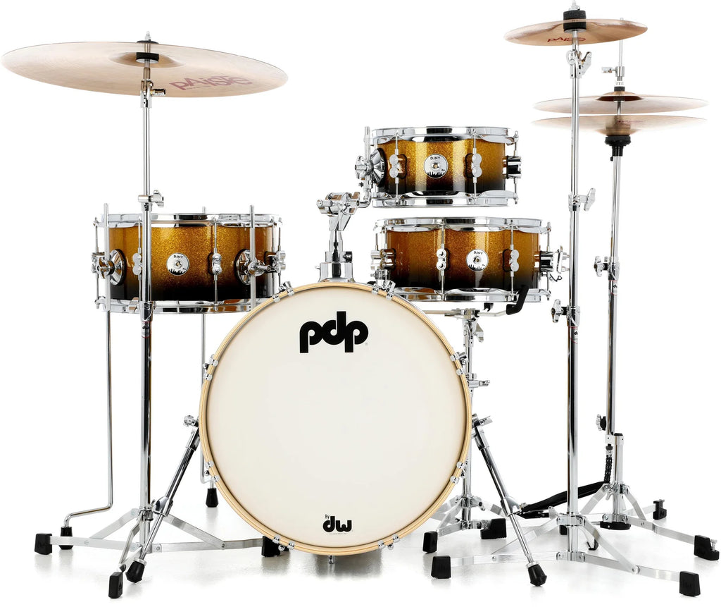 PDP Daru Jones New Yorker 4 piece Drum Set Gold to Black Sparkle Fade.