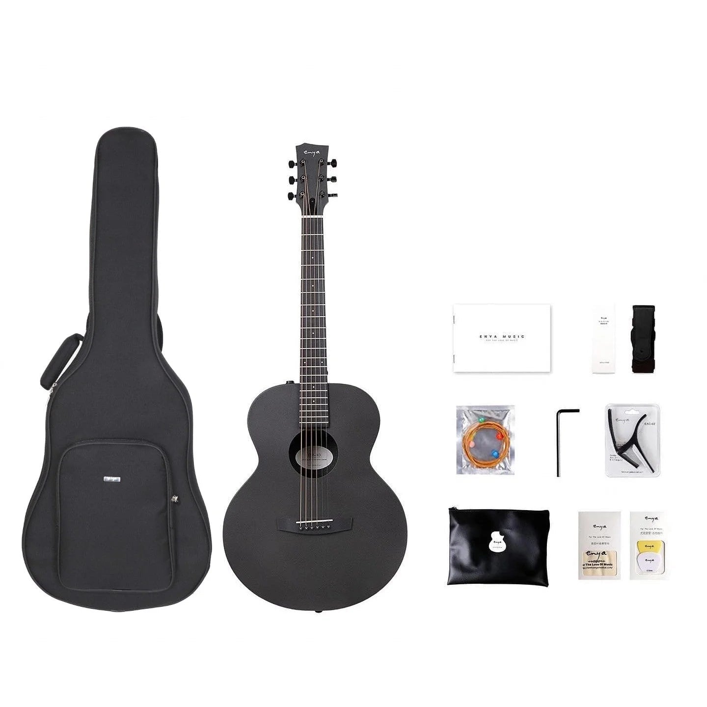 Bộ khóa đàn có in tên của hãng Enya, khóa vặn nhẹ tay, giữ dây chắc, lớp sơn chống rỉ sét trong quá trình sử dụng.