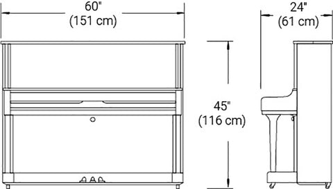 Mẹo: Bạn nên lấy một tờ giấy vẽ lớn và vẽ phác thảo kích thước của cây đàn piano mà bạn đang cân nhắc mua. (Các kích thước như hình minh họa bên dưới có sẵn từ nhà sản xuất hoặc đại lý.) Đảm bảo thêm 2 feet vào chiều sâu của đường viền nhằm chừa vị trí cho ghế ngồi.