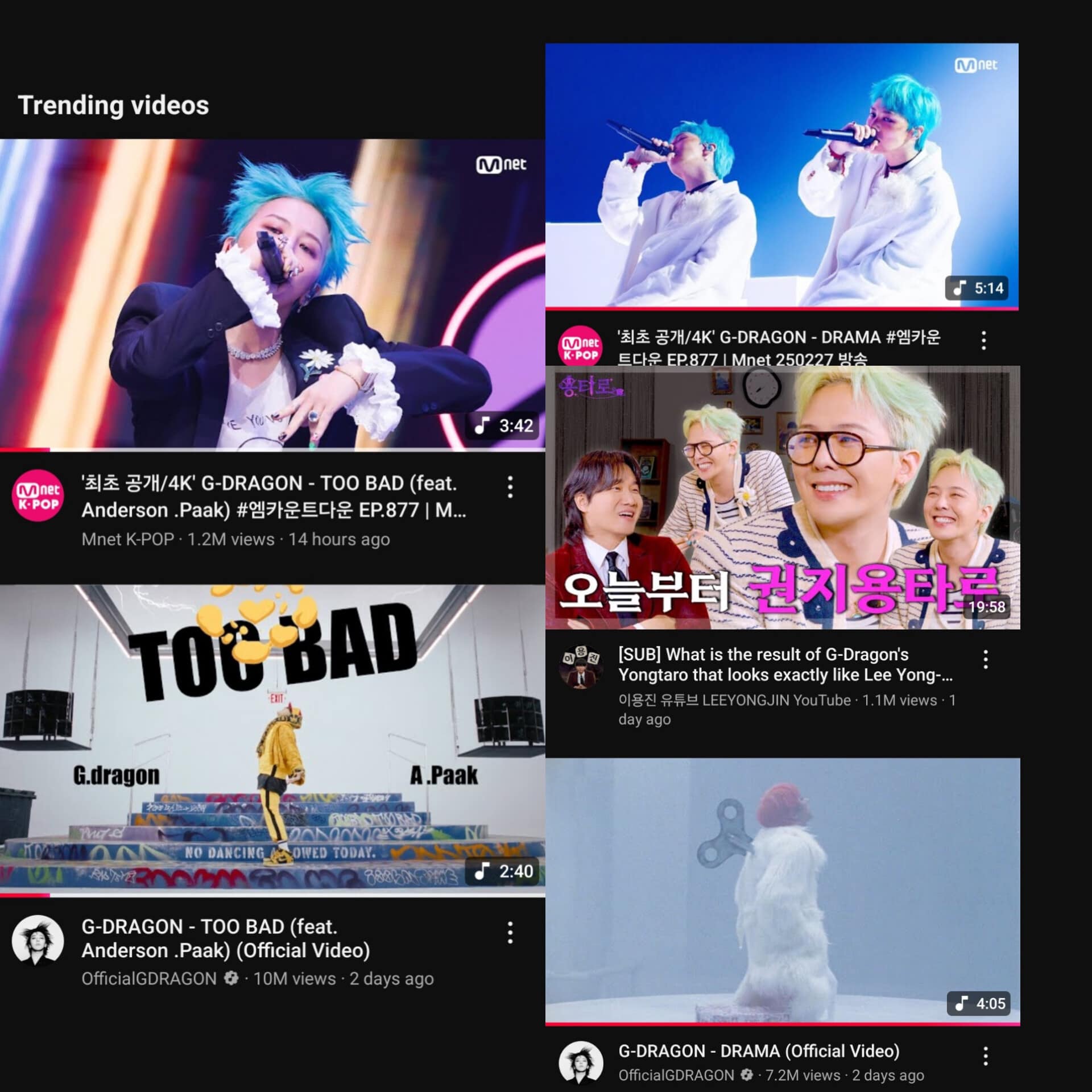 Mới đây, G-Dragon đã cho ra mắt album phòng thu thứ ba mang tên Übermensch, cùng hai ca khúc chủ đạo DramaToo Bad. Đây là sản phẩm đánh dấu hơn 10 năm kể từ album đầy đủ COUP DE'TAT (2013), và ngay lập tức, G-Dragon đã gây tiếng vang lớn trong làng nhạc K-pop.